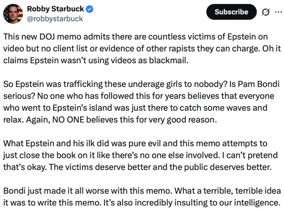 #1 Why were Jeffery Epstein and Ghislaine Maxwell arrested and charged with operating an enormous sex trafficking ring that supposedly involved thousands of clients if no such clients ever existed? As Robby Starbuck has pointed out, apparently we are supposed to believe that all of the powerful men that visited Epstein’s island were “just there to catch some waves and relax”…