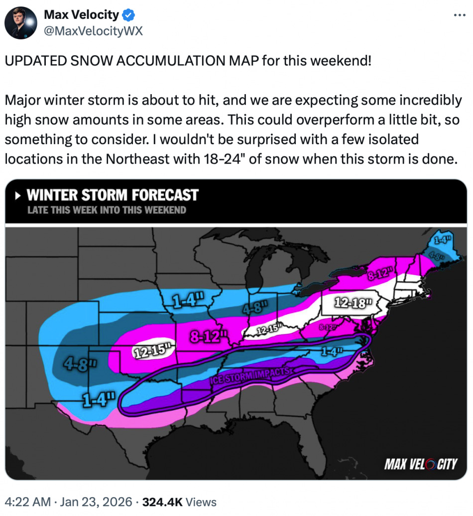 #1 We are being warned that 230 million Americans are about to experience “significant snow and/or ice”…