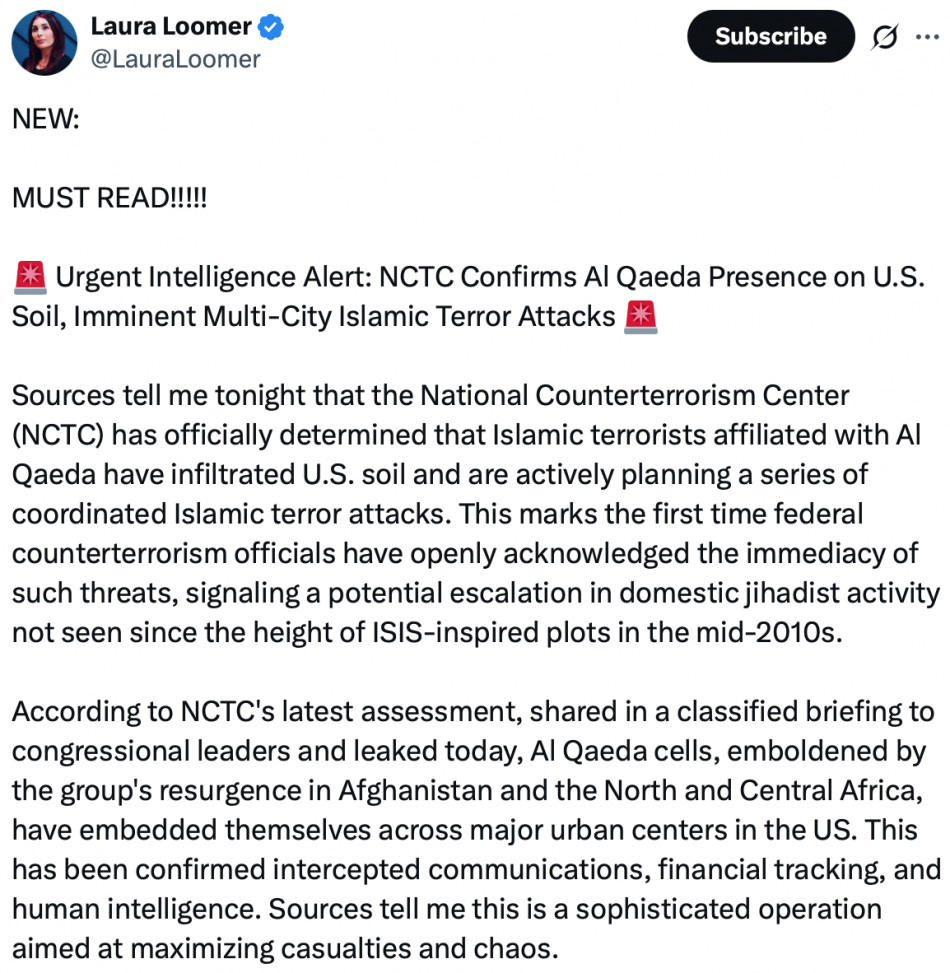 Over the weekend, a number of people were alarmed by something that Laura Loomer posted on her Twitter account on Friday…