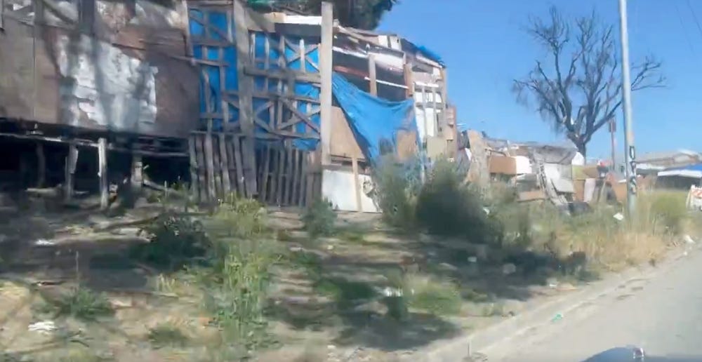 Michael Oxford, the host of CaliBased, posted a video on May 31 of massive temporary houses built along service roads that open up into main roads in Hooverville, Oakland.