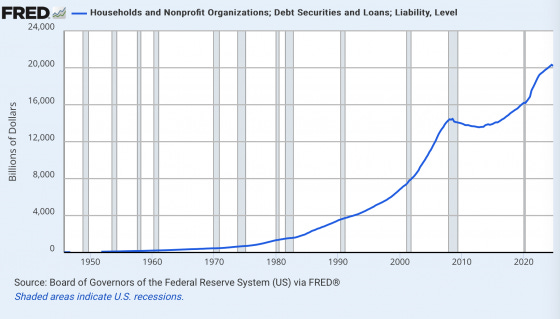 4 – Household debt has soared to almost unbelievable levels over the last 30 years. The sad truth is that it is not just the U.S. government that has a massive debt problem. U.S. households have also been accumulating debt at a staggering rate. Total household and nonprofit organization debt did not pass the 2 trillion dollar mark until the mid-1980s, but now total U.S. household and nonprofit organization debt has surpassed the 20 trillion dollar mark. Household debt alone accounts for approximately 18 trillion dollars of this total…