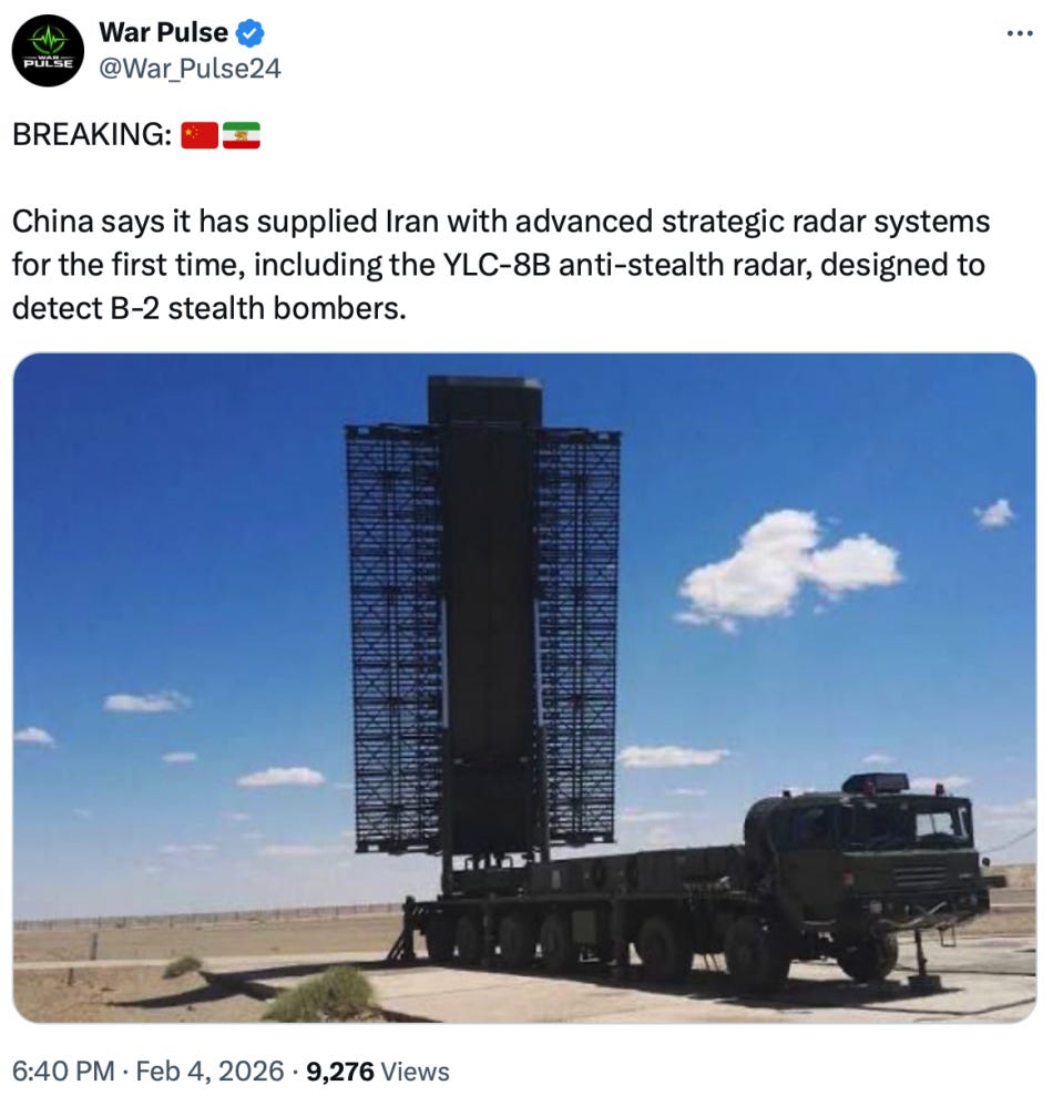 In addition to fearsome new missiles, it is also being reported that China has given Iran highly advanced radar systems that can actually track stealth aircraft…