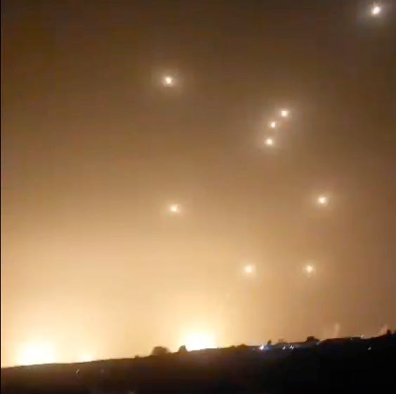But everyone seems to agree that “hundreds” of missiles were in the air, and videos posted on social media appear to show many of them making impact.