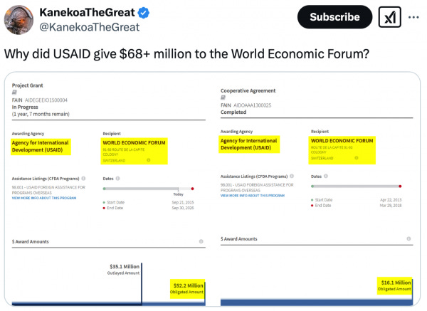It has also been revealed that USAID gave $68,000,000 to the World Economic Forum…