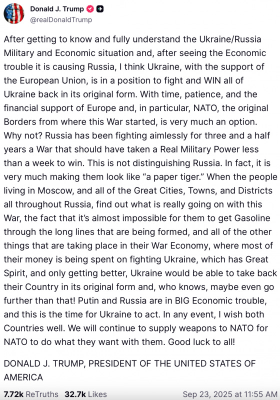 After Trump posted this extremely alarming message on his Truth Social account, he doubled down on his position during a press appearance…