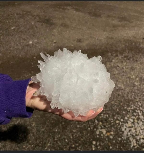 And it turns out that some parts of northern Texas were also hit by “hail as large as softballs”…