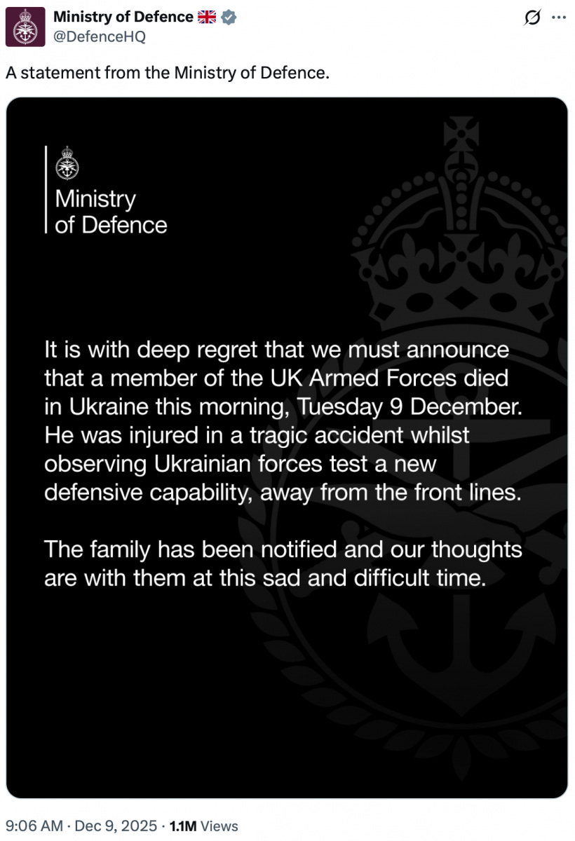 Interestingly, the UK Ministry of Defence just announced that a member of the UK Armed Forces has died in Ukraine…