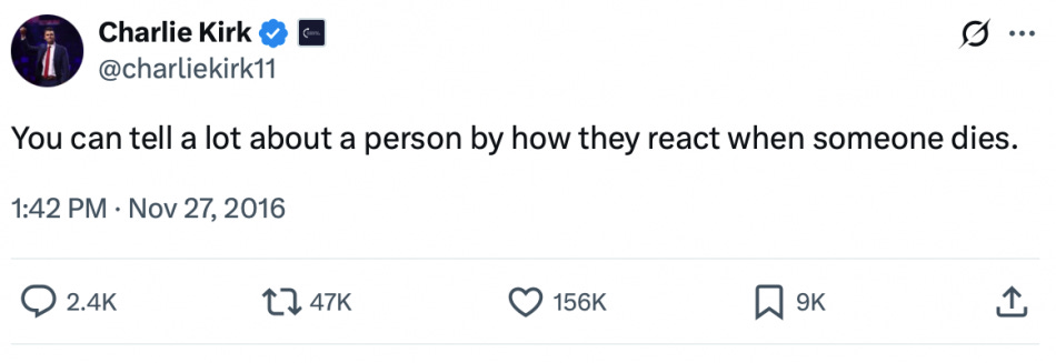 On the flip side, I have been absolutely horrified by how many on the left have been celebrating his death.