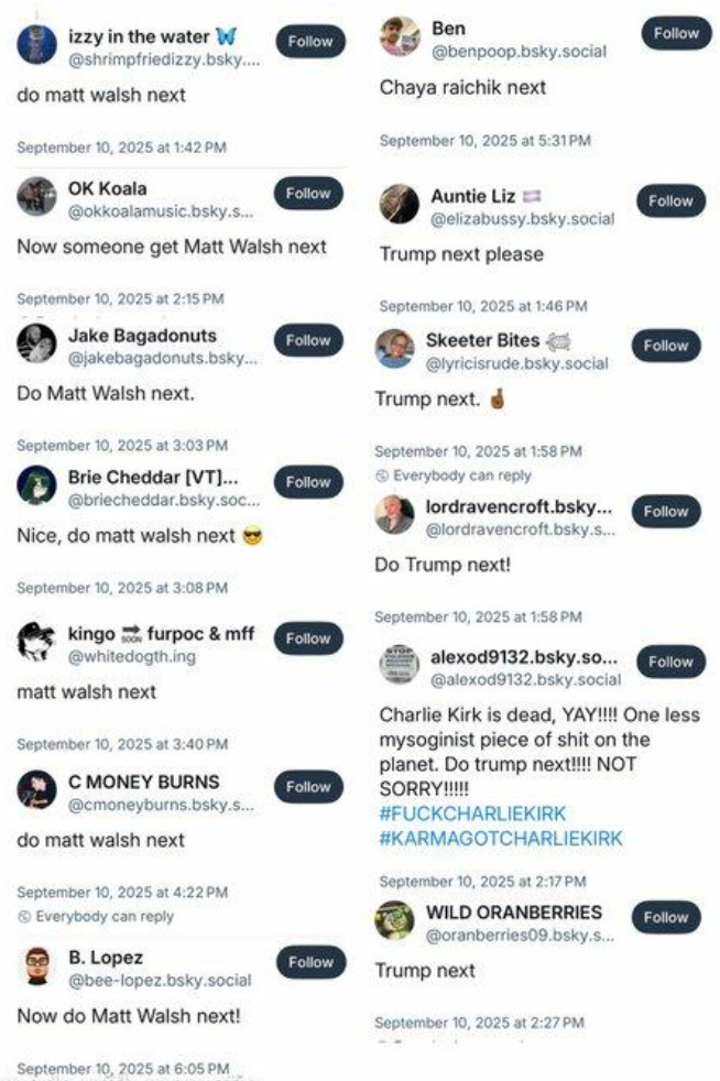 In the aftermath of Charlie Kirk’s death, many BlueSky users were suggesting prominent conservatives that should be assassinated next. The following are some of the examples that Zero Hedge posted earlier today…