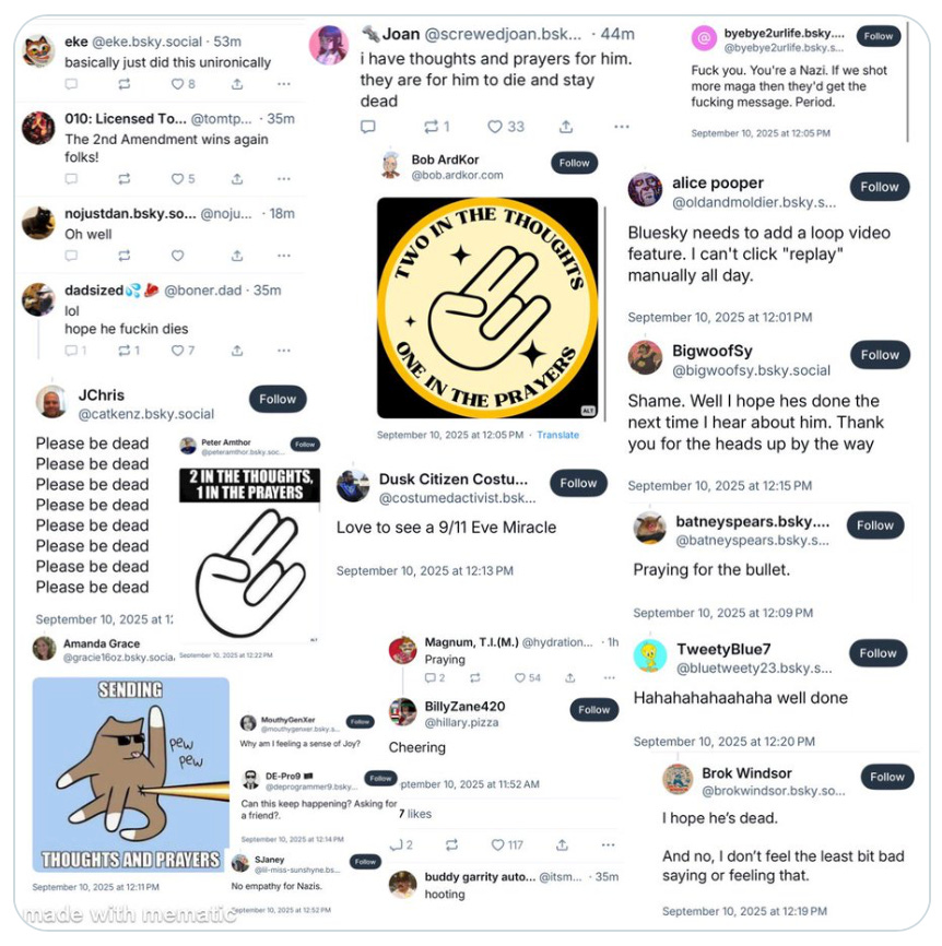 And here are some examples of the hatred that was being directed at Charlie Kirk by BlueSky users immediately after news broke that he had been shot…